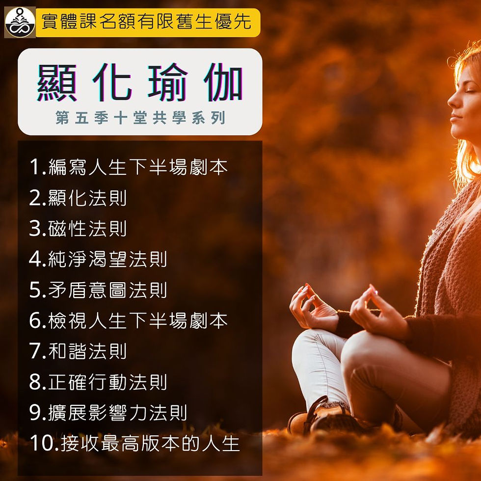 《顯化瑜伽十堂課》結合古老瑜伽智慧、量子法則與心智鍛鍊,帶你從內在頻率、身體能量、思維模式同步調整,啟動你真正的創造力。